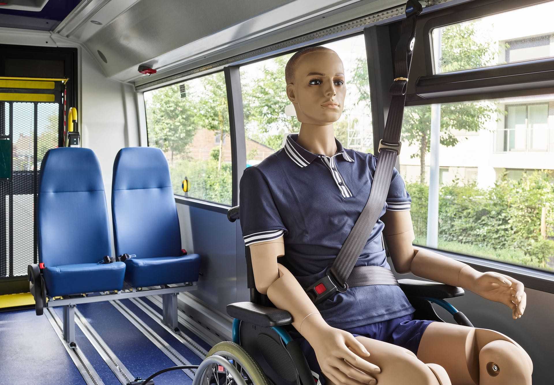 The reliability of our solution can be confirmed with dynamic tests performed by Qstraint, our development partner in the South of England. From the videos below, it is clear that an optimal result is only achieved when both the wheelchair and the passenger are securely fastened.